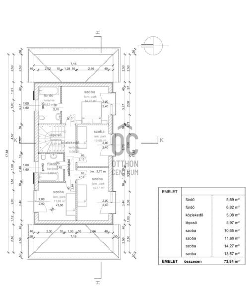 - az emeleten 4 halószoba, és két kádas fürdőszoba kerül kialakításra