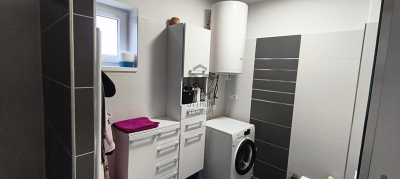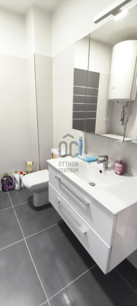 A méretre gyártott konyhabútor beépített gépekkel és a teljes fürdőszoba bútorzat a vételár részét képezi.