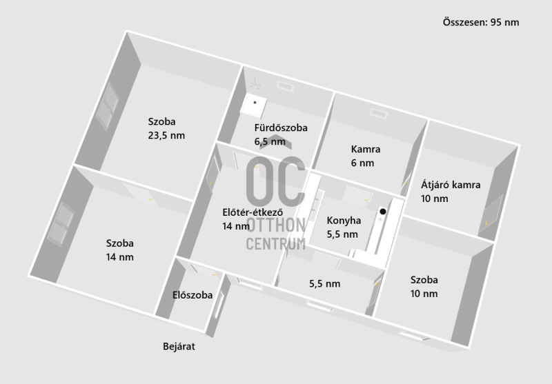 Az épület remek tájolású, az év bármely időszakában a szobák napfényben részesülnek.