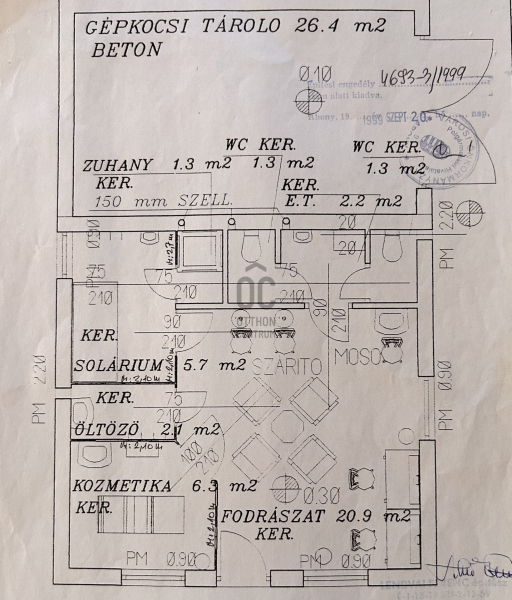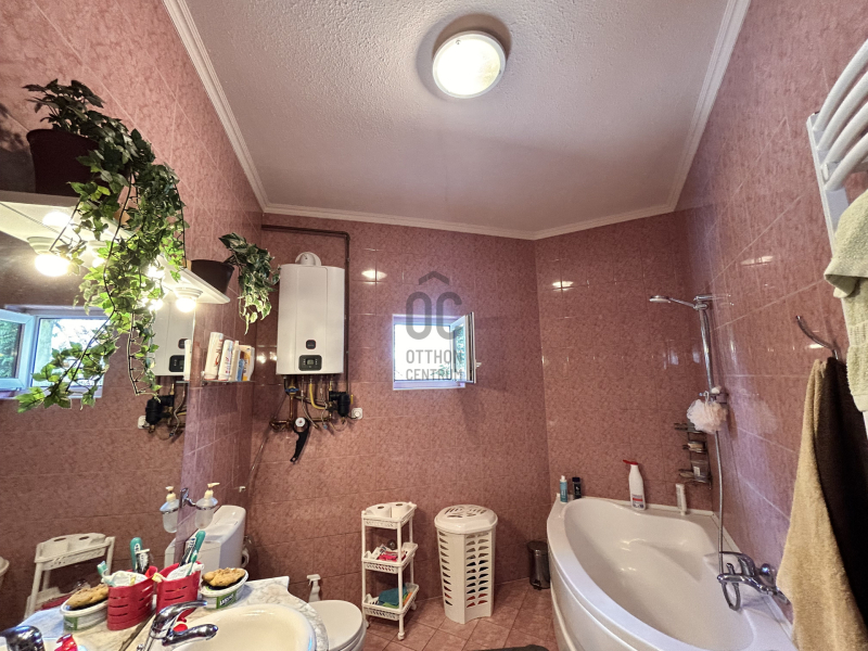 A földszinten jelenleg egy szépen kialakított szépségszalon működik, 3 külön helyiséggel, 2 WC-vel és zuhanyzóval. A tetőtérben étkező-nappali, fürdőszoba és egy szoba található. A fűtést gázkonvektor biztosítja, mindkét szinten hűtő-fűtő klíma segíti a kellemes hőérzetet.