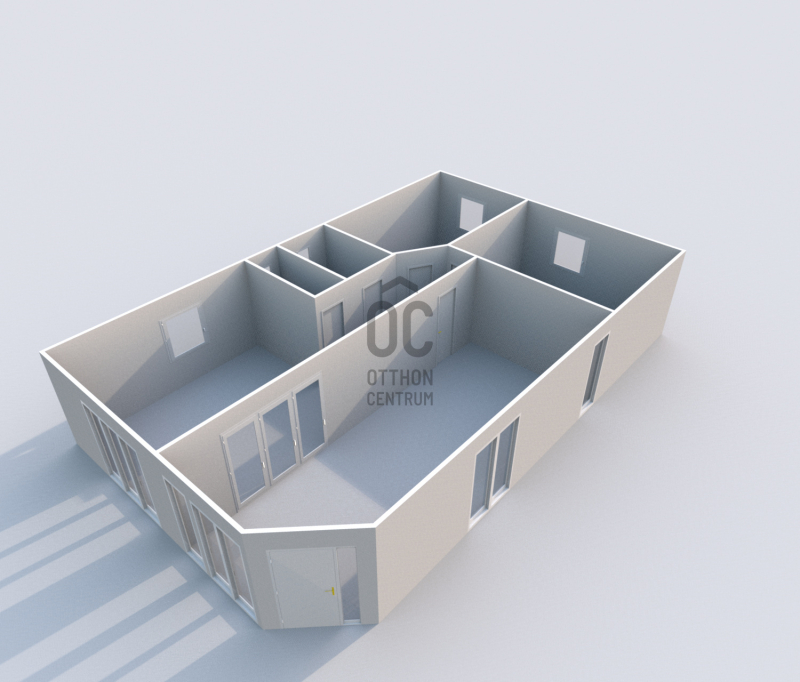 Jelenlegi elrendezése praktikus és tágas: előszoba, konyha-étkező-nappali egy légtérben, 2 szoba, fürdőszoba és kamra kap helyet benne. A fűtésről 2025-ben beszerelt új kondenzációs kazán gondoskodik. A komfortot műanyag nyílászárók és hűtő-fűtő klíma növeli.