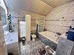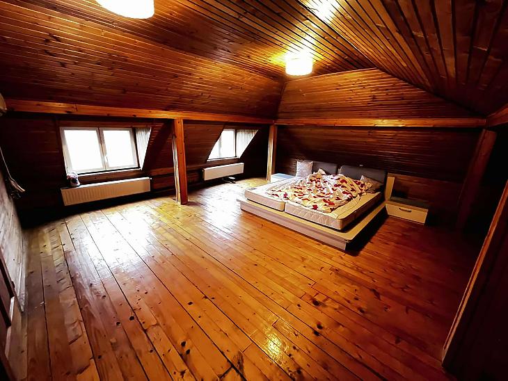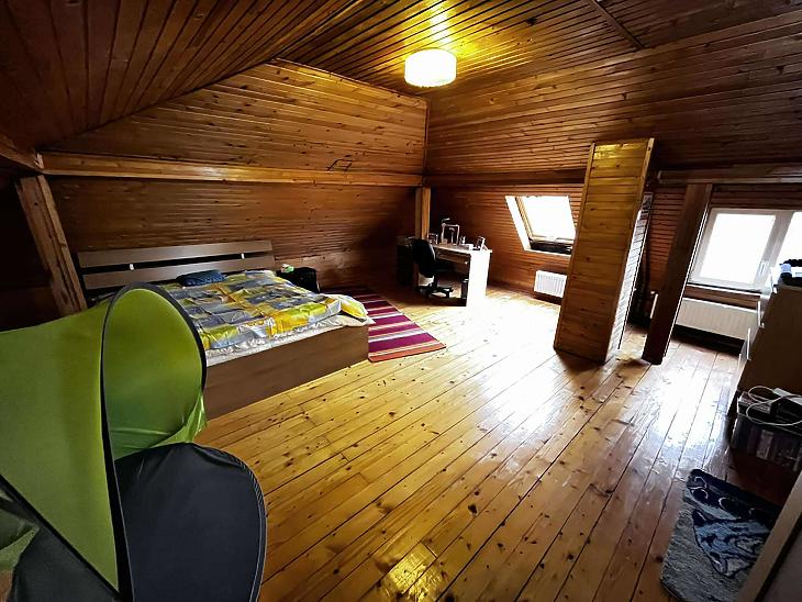 A ház 3 szintes, a földszinten: nappali, szoba, konyha, mosdó, kazánház áll rendelkezésünkre, az emeleten: 3 szoba, 1 félszoba, tágas fürdőszoba. Tetőtérben pedig 2 nagy fenyő burkolatú szoba került kialakításra. A gázkazán és teljes gázcsőhálózat cserére került 2024-ben. A ház rendelkezik egy 124 M2 melléképülettel, ahol a medence és a szauna kapott helyet, napelem fűti. A ház biztonságát kamera és riasztó védi.