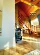A nappaliban hatalmas üvegfelületeket alakítottak ki, ennek és a NY-i tájolásnak köszönhetően a ház szinte egész nap fényárban úszik. A nyitott födémes kialakítás miatt nagyon egyedi és tágas, világos hangulat jellemzi a helyiséget.
