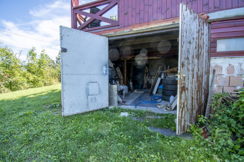 - a teraszról körbejárhatjuk a házat, a kertbe érve találhatjuk a ház alatt a garázst, egy tárolót és egy galériával ellátott tárolót, tovább haladva a kert végébe egy