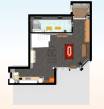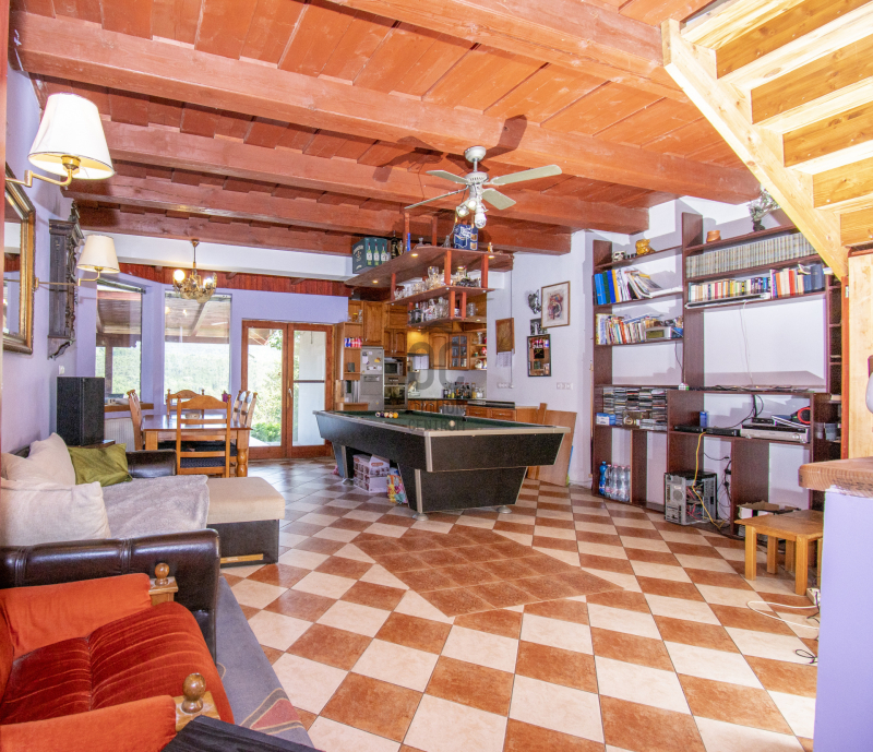 - elsőre a hatalmas nappalit konyhát látjuk meg melyben megtalálható a kandalló, oldalra nézve pedig a tágas fürdőszoba.