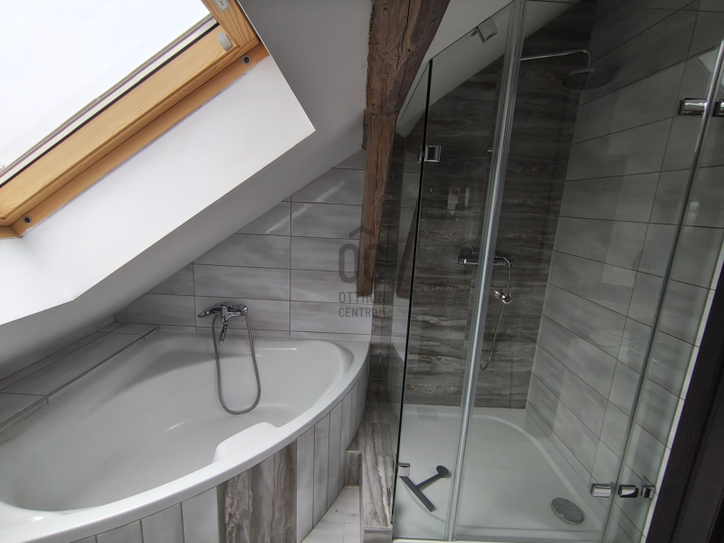 A fürdőszoba valódi komfortélményt nyújt: sarokkád és külön zuhanyzó.