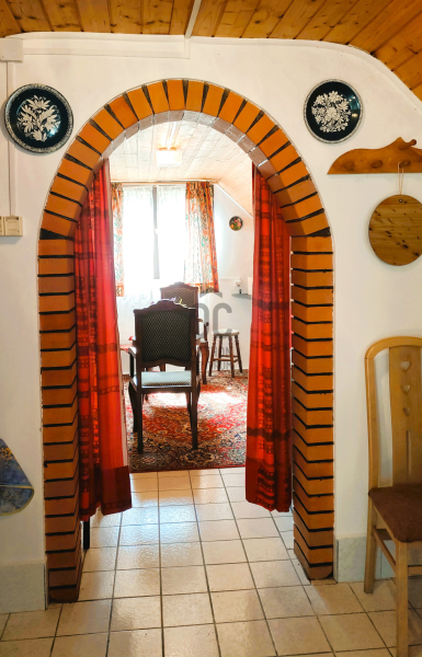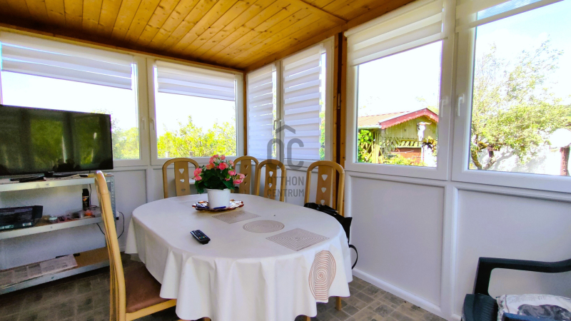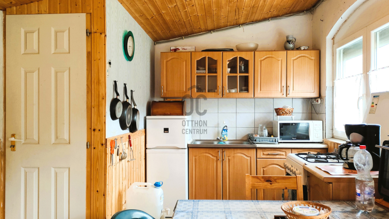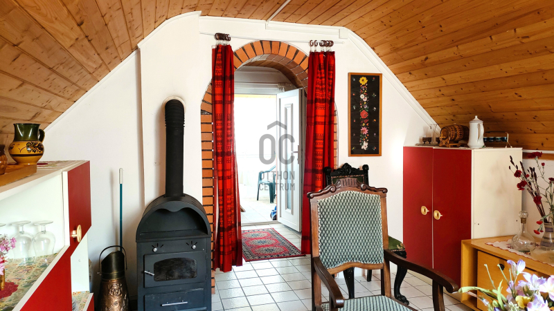 A második, ugyancsak téglából készült házikóban 20 m2 nagyságú NAPPALI+KONYHA+ÉTKEZŐ továbbá egy mosakodó helyiség+wc KÍNÁL KOMFORTOS LAKÓTERET.