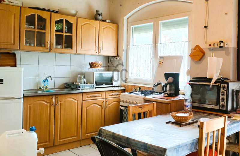 Az Ingatlan első téglaépületének földszintje 32 m2 hasznos, KELLEMES HANGULATÚ LAKÓTÉRREL - 1 szoba, 1 teakonyha és 1 nappali+étkezőként funkcionáló - járólappal burkolt helyiségekkel rendelkezik, amihez egy 10 m2 nagyságú TERASZ csatlakozik. Az épület egy része alatt 23 m2 területű, két részre tagolt PINCE található.