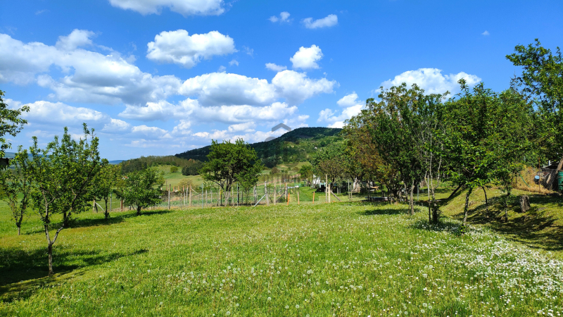 A telek minden pontjáról a természet mosolyog ránk vissza, kertjéből zavartalan kilátásunk nyílik a lenyűgöző tájra, a tanúhegyek közül a Csobáncra, a Hegyesdre, a Haláp-hegyre és a csupa-zöld, vadvirágos mezőkre.