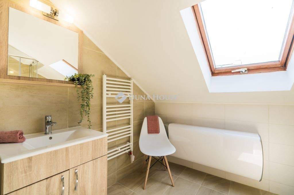 A 2. ház:Belső kétszintes, külön bejáratú, 1970-es években épült, 2020-ban teljeskörűen felújított, cserép fedésű, korszerű napelemrendszerrel felszerelt, így szinte 0 a fizetendő energia, Gáz ebben az épületben sincs!A földszinten nagy nappali, konyha, étkező, kamra, hálószoba, zuhanyzós fürdő WC-vel, lépcsőtér, pincelejárat, terasz található.A tetőtérben hálószoba, zuhanyzós fürdő WC-vel, közlekedő, pihenőtér, lépcsőtér található.A pincében 3 összenyitott helyiség, ahol a gépészeti csatlakozások és a napelemrendszer központi egysége került elhelyezésre.
