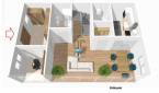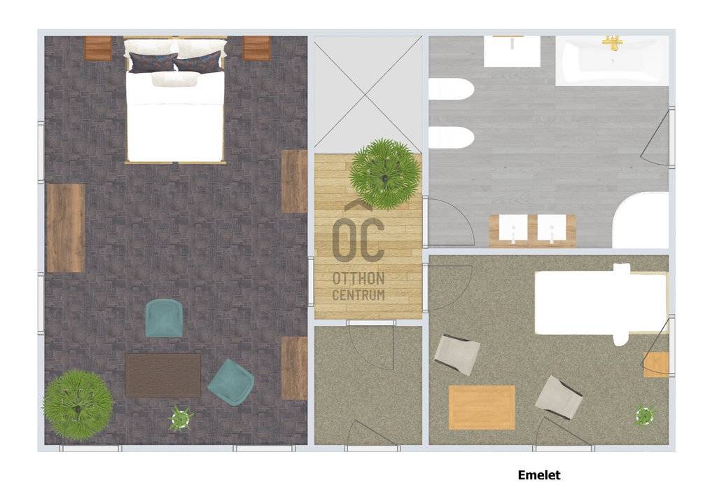 A ház belső elrendezése három szobával és két fürdőszobával rendelkezik, amely lehetővé teszi a kényelmes életvitelt, vagy akár a vállalkozás működtetését is. A tágas nappali világos és barátságos atmoszférát teremt, ahol a látogatók és az ügyfelek is jól érezhetik magukat. A 20 nm-es terasz és a 2 nm-es erkély pedig lehetőséget ad a szabadban való pihenésre, miközben a zöldre néző kilátásban gyönyörködhet.