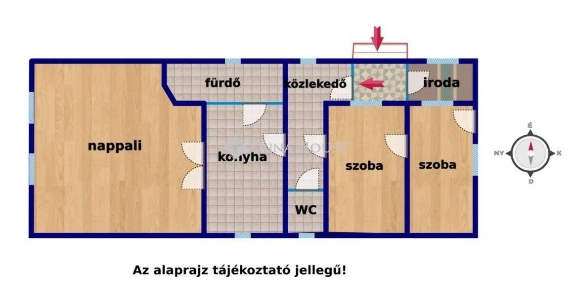 Alapterület: Nappali + 2 szoba + iroda + boltíves konyha