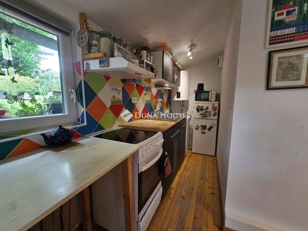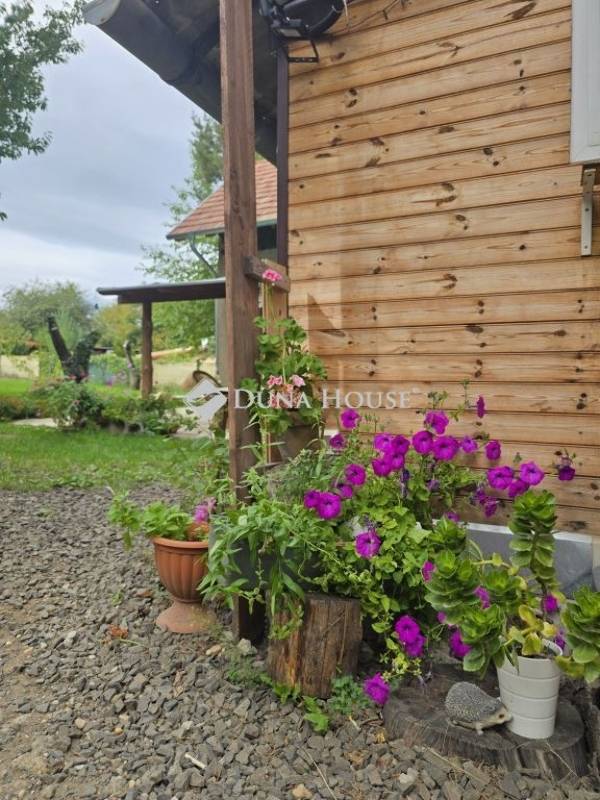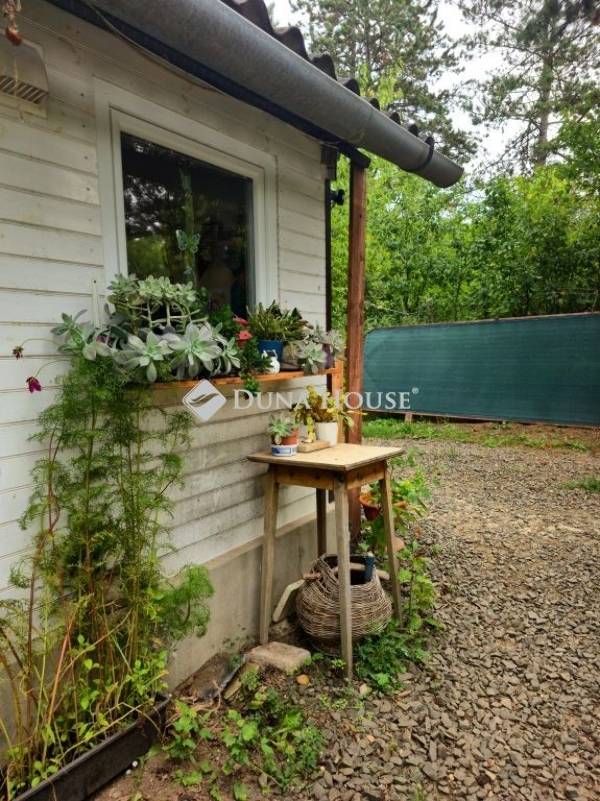 Vác egyik legszebb részén, Székhegydűlőn eladó egy 1413 négyzetméteres ősfás telek, 2 kis házzal!A terület két telekből áll (az egyik 705, míg a másik 708 négyzetméteres). Az ingatlant jóformán végig aszfaltzott úton tudjuk megközelíteni, majd egy kis részen, már befordulván az utcába, jó minőségű murvás úton közelíthető meg a ház. Az egész telek körbe van kerítve, gyönyörű kilátás van a Naszály-hegyre, 2 perc sétával pedig teljes panorámában gyönyörködhetünk a Dunakanyarban!A házakról:Az első ház egy könnyűszerkezetes, nyaralóként nyilvántartott, ám állandó lakhatásra is kiváltképp alkalmas. - 27,5 négyzetméter. Az előszobába/közelekdőbe érkezvén egyből jobb kézre található egy zuhanyzós fürdőszoba WC-vel, mosdóval. Ugyaninnen egy igen kis praktikus fallal elválasztott szoba található, amit jelenleg hálószobaként használnak, de akár egy kinyitható kanapéval ez akár egy nappali és hálószoba is lehet egyben. A közlekedő végén pedig a konyha található egy kis étkezőpulttal.- a fűtéséről egy vaskandalló gondoskodik, valamint egy hűtő-fűtő klíma- a ház kívül faborítású, belül 10cm-es kőzetgyapot szigetelést kapott a fal, gipszkarton borítással, a tetőt pedig 15cm-es kőtegyapottal szigetelték- az ingatlanban 3x16 Amper lett behozva, átvezetékelve- az ablakok műanyagra lettek cserélve (2 rétegű)- vezetékes víz a házban- 7 köbméteres emésztőA másik ház téglából épült, mely akár igény/elképzelés szerint egybe is építhető a másik kis házzal, bruttó 30 négyzetméter, tetőtérbeépítéses, teljes tetőcserével (30cm-es kőzetgyapot szigetelést kapott), itt már 3 rétegű műanyag nyílászárók lettek berakva, valamint Fakro tetőtéri ablak. Ezen házhoz tartozik egy nagyobb méretű fedett terasz, melyben szintúgy rengeteg lehetőség rejlik. Nyárikonyha, stb...Jelenleg ez az épület tárolásra van használva. A telekről: - a kert nagyon szépen karban tartott, számtalan ősfa, gyümölcsfa teszi még tisztábbá a levegőt. Szilva, alma, körte, őszi valamint sárgabarck fa, diófa, mogyoróbokor, ginkobiloba...- esővízgyűjtő ciszterna a locsoláshoz, ezen felül 2 kerti csap- nagy méretű fém kerti tároló- fedett kocsibeállóAz 1413-as telek két külön helyraziszámon van, kizárólag egyben eladó, földtörvények alapján kifüggesztést igényelnek, melynek lebonyolításban természtesen készséggel állunk segítségükre!Az ingatlan kiváló választás lehet azon kedves érdeklődők számára, akik igénylik a természet közelségét, mégis fontos szempont a város közelsége...Amennyiben felkette érdeklődését az ingatlan, várom hívását akár kérdéssel, akár megtekintéssel kapcsolatban!