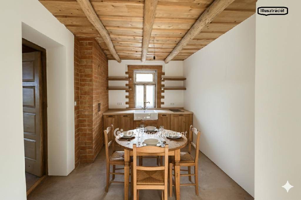 Jakabszállás külterületi részén eladásra kínálunk egy 57nm-es FELÚJÍTÁS alatt lévő tanya megnevezésű ingatlant. A tanya egy 5288 nm-es területen helyezkedik el, melyből 3348nm-es terület hivatalosan erdő, mely kb. 2010-es évben telepített akácos. Az egész terület körbe kerített. A tanyás ingatlan 2 szoba, konyha-étkező, fürdő-Wc, előtér helyiségből áll. Az ingatlan felújítása során kialkítottak egy fürdőszobát mely teljesen ÚJ, a szaníterek elhelyezése az új tulajdonosra vár. A felújítás kiterjedt a villanyhálózatra is mely teljesen új, hálózati rákötése 2026. augusztusában várható az MVM-től. A tanya belső hangulatát rusztikusra tervezték, új a mennyezeti gerendázat és a mennyizeti fa berakás is, az ablakok köré szeletelt téglaberakás került, ez ad hangsúlyt a helyiségeknek. A vályog falazat kívül, belül új vakolatot kapott. A helyiségeket újra betonozták, melyek burkoltatása az új tulajdonosra vár. Az otthon melegéről több megoldás is gondoskodhat, új a szépen kirakott téglaberakásos kémény melyre kandalló csatlakoztatható, de telepíthetünk NAPELEMET is melyről hűtő-fűtő klímát is üzemeltethetünk. A felújítás során a tetőzeti gerendázat is megújult és a padlás 20cm-es hőszigetelést kapott. Ajánlom ezt az ingatlant mindazoknak akik egy madáscsicsergős , nyugodt környezetben szeretnének élni. Kisebb ráfordítással ha befejezi az új tulajdonos a felújítást egy nagyon HANGULATOS tanyát lehet kialakítani, melyre készítettünk is egy látványtervet, mely a fotók között megtalálható. Az ingatlan készpénzes vásárlók számára elérhető.