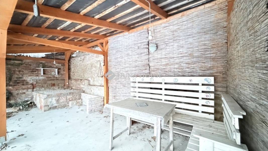 A fedett terasz és az udvar adottságai kiváló alapot adnak egy szaunarész vagy wellness-jellegű pihenőtér kialakításához, ami apartmanos hasznosítás esetén komoly értéknövelő tényező.