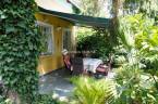 A 684 m2-es telek hátsó részén a tűztorony és a vár felé is panorámás, bensőséges, padokkal, grillezővel, fatározóval felszerelt belső udvar került kialakításra, mely ugyanakkor nagyobb létszámú társaság fogadására is alkalmas.