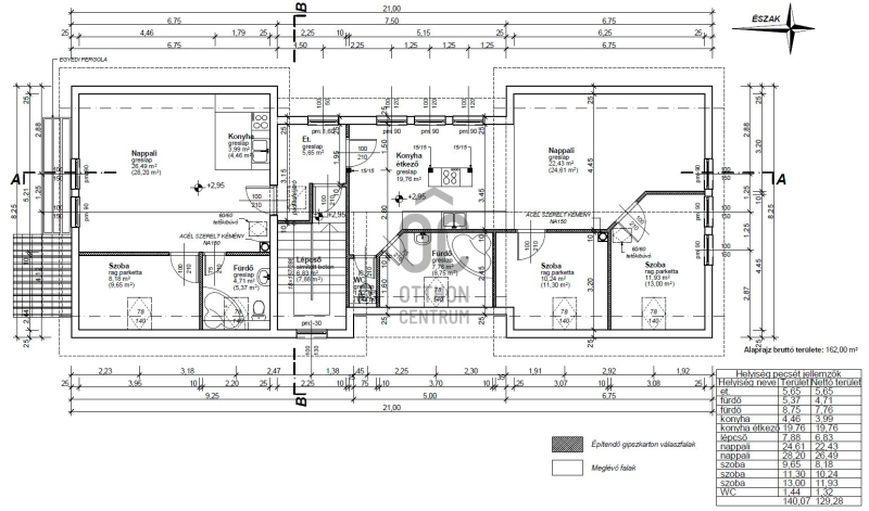 Lakás 1: nettó 43,5 nm / bruttó 50 nm