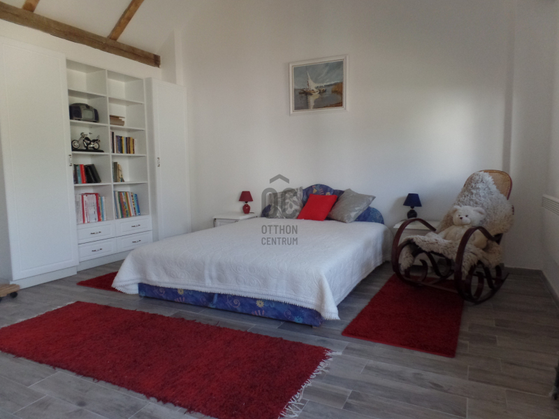 Eladásra kínálunk Balatonlelle csendes utcájában, teljesen felújított, autentikusan berendezett, fagerendás, vegyes falazatú, 140 m2 alapterületű, 2565 m2 telken álló önálló lakrésszel is rendelkező, parkosított családi házat.