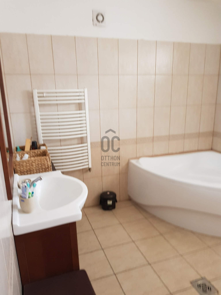 A tágas fürdőszobában sarokkád, bide is növeli a komfortot.