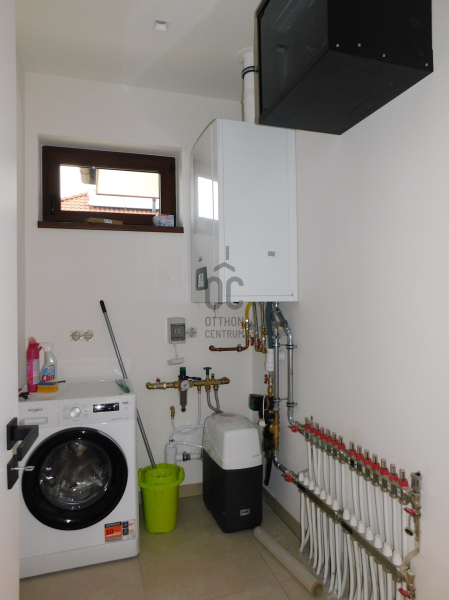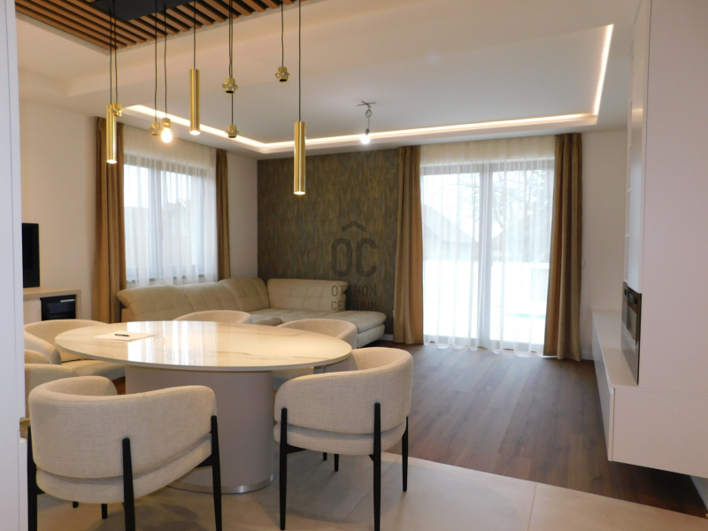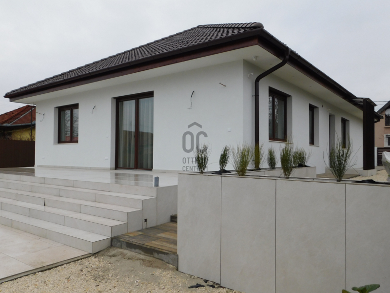 A 136 m²-es, modern kialakítású ingatlan egy 554 m²-es, igényesen parkosított telken helyezkedik el.