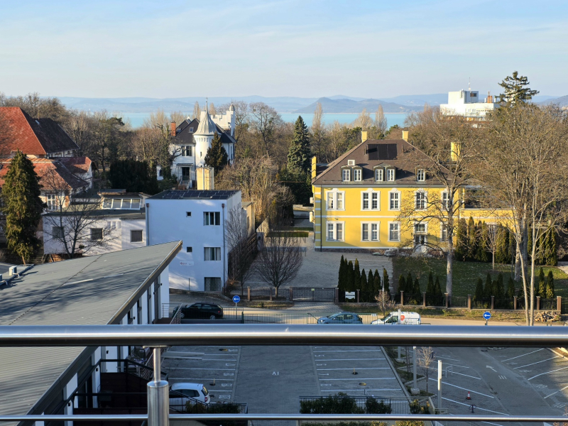 Az épület tetején napozóteraszt alakítottak ki, ahonnan gyönyörű kilátás nyílik a Balatonra és az északi partra. Alsó szinten lévő közös helyiségbe mosókonyha található, így nem kellett a lakásokban elhelyezni.