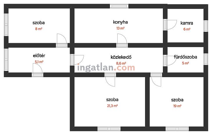 - A ház alapterülete 86 nm.