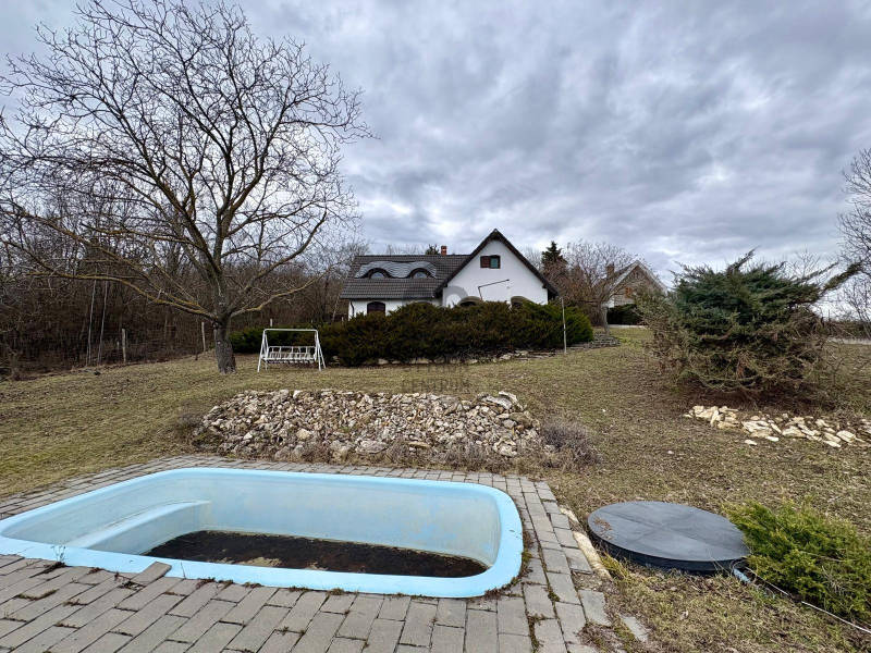 A 3309 m²-es, nyeles teleken elhelyezkedő 110 m²-es ház teljes elvonulást biztosít: a környező zöld, erdős, be nem építhető terület garantálja, hogy a Balaton látványa és a nyugalom örökre megmarad. A házra senki nem lát rá, az intimitás abszolút. A teraszról, a kertből és a medence mellől feltáruló panoráma minden napszakban lenyűgöző – vitorlásokkal tarkított víztükör, természetes zöld környezet, zavartalan csend.