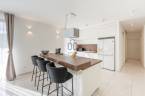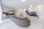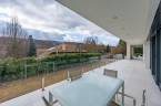 A nappaliból és minden helyiségből közvetlen kijárat nyílik a teraszra, a hatalmas üvegfelületek pedig egész nap természetes fénnyel töltik meg az otthont.