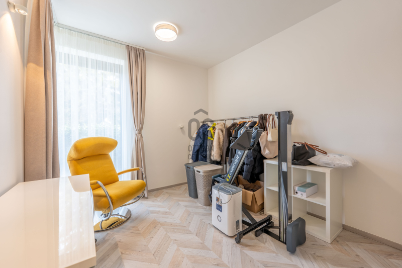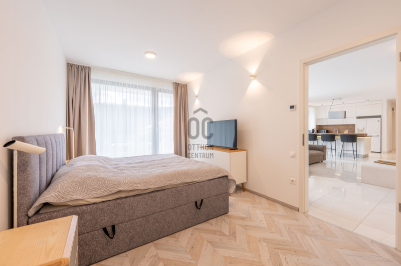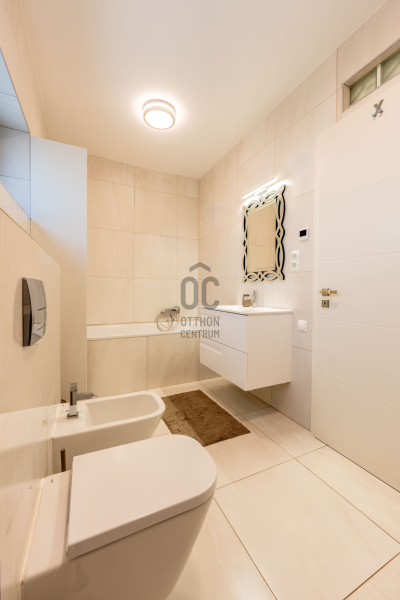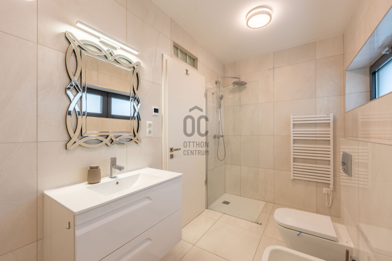 a tetőn elhelyezett 18 darab napelem biztosítja az elektromos ellátást és a padlófűtést. A teljes ingatlan SmartHome rendszerrel vezérelhető, helyiségenként szabályozható, akár távolról is.