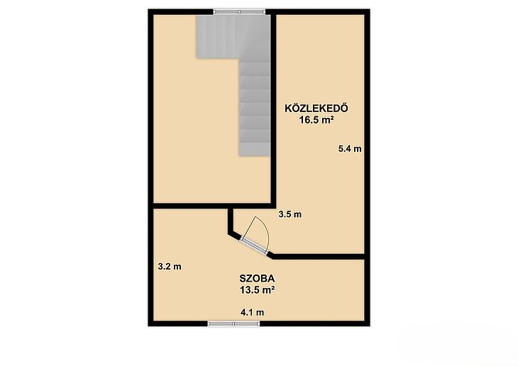 Földszint: 2 szoba, amerikai konyhás nappali, zuhanyzós fürdőszoba + mellékhelyiség, közlekedő