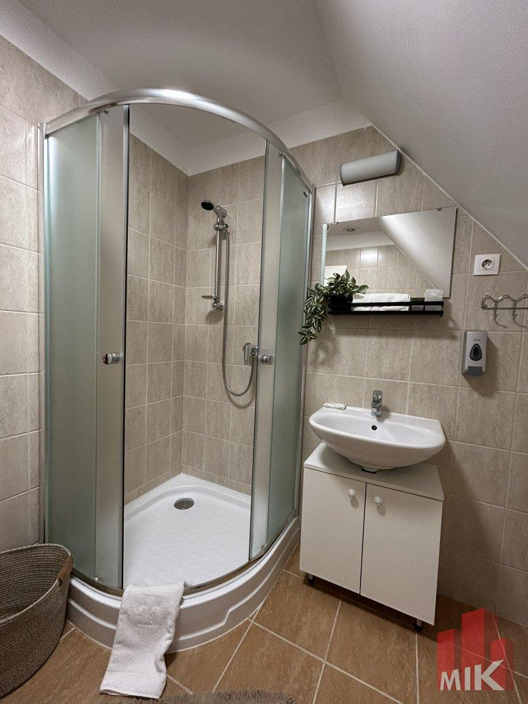 A vendégház háromszintes kialakítású: földszinti, tetőtéri és beépített padlástéri résszel rendelkezik, mindhárom szint vendégek fogadására, elszállásolására alkalmas. Az épületben összesen 4 szoba található, mindegyikhez saját fürdőszoba tartozik, a teljes kapacitás 13 fő elszállásolására alkalmas. Emellett rendelkezésre áll olyan szoba és mellékhelyiség is, amely akadálymentes kialakítású, így a mozgáskorlátozott vendégek számára is biztosított a kényelmes használat. A kialakítás kényelmes, jól elkülönülő életteret biztosít, így az ingatlan egyszerre szolgálhat vállalkozási és lakhatási célokat, de akár teljes egészében magánhasználatra is ideális.