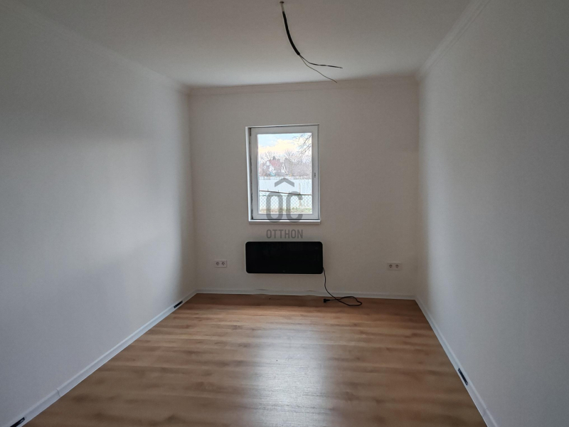 A ház elosztása praktikus és otthonos: három külön nyíló szoba, valamint egy világos, amerikai konyhás nappali biztosítja a kényelmet. Az épület tégla falazatú (egy válaszfal tömés), a tetőszerkezet teljesen megújult, cserepeslemez fedéssel. A homlokzati szigetelés 10 cm, a lábazaté 5 cm, és a padlófűtés is elkészült. A kazán beszerelése és a belső munkálatok befejezése az új tulajdonos feladata, így lehetőség nyílik arra, hogy mindenki a saját ízlésére formálja a házat.