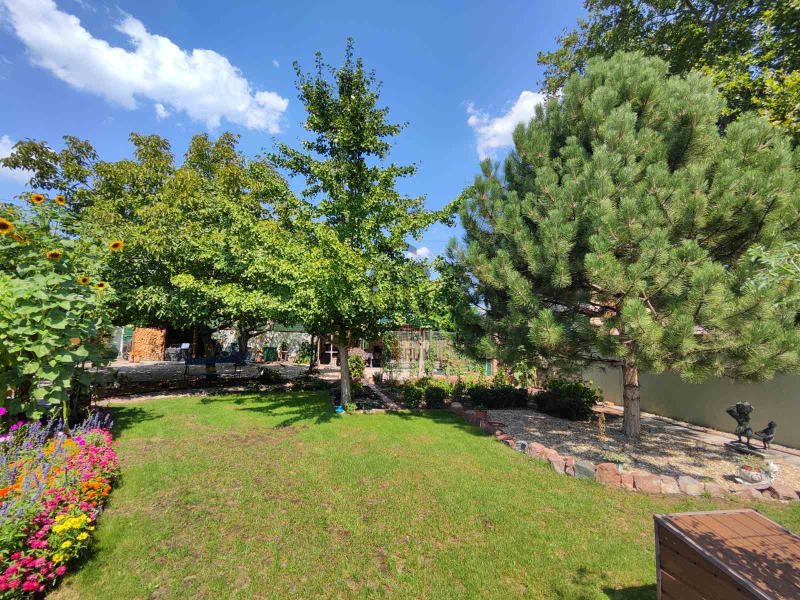 Eladásra kínálom Balatonbogláron ezt a 667 m² -es telken elhelyezkedő 67 m² -es megbecsült tégla építésű házikót. A három bejárattal rendelkező házban előszoba, konya, étkező, fürdőszoba, nappali, hálószoba kamra, tároló kapott helyet. Van fedett illetve nyitott terasza is. A ház melegéről gáz-cirkó kazán, illetve egy cserépkályha gondoskodnak. A vakondhálós öntözőrendszerrel ellátott gondozott udvarban fúrt kút, melléképület, kis faház illetve egy épített füstölő is található.
