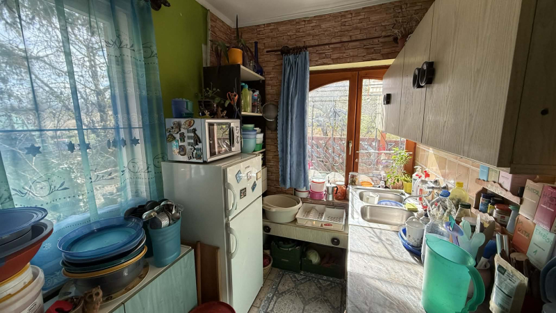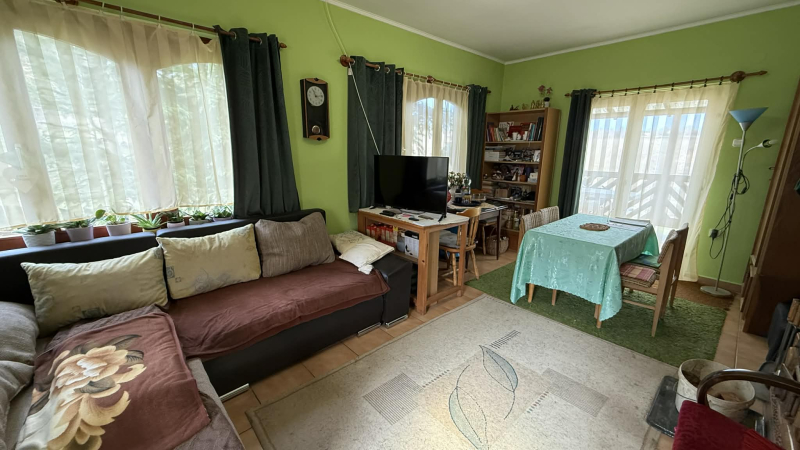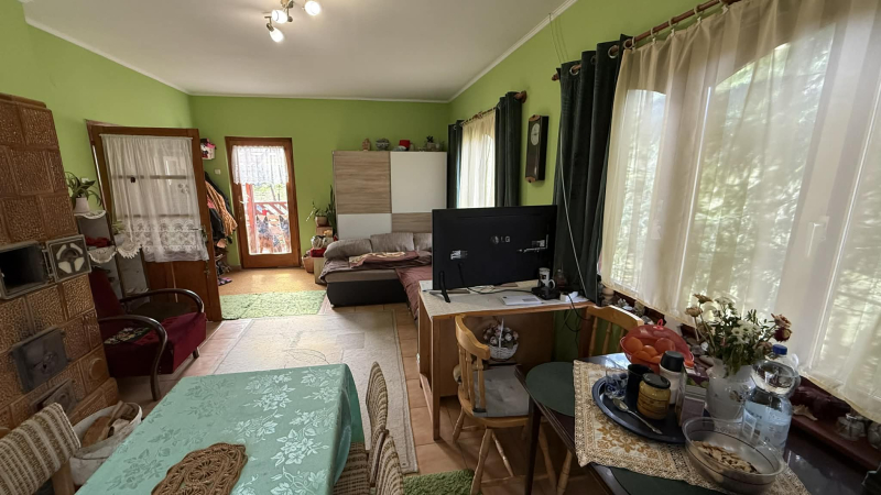 Ezen kívül egy hálószoba,konyha és fürdő található,valamint egy déli fekvésű,kertre néző,fedett terasz is,ahol garantáltan elfér egy nagyobb család is.