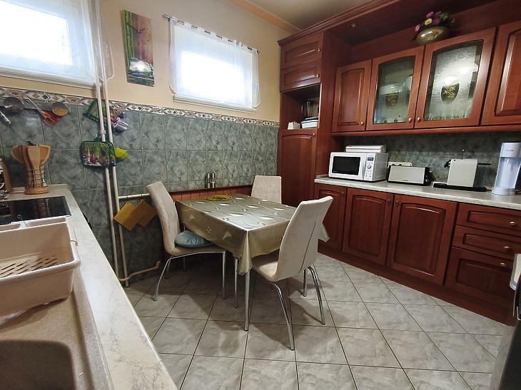 1984-ben B38-as téglából épült, perlit nemes vakolatos 97m2 alapterületű szinteltolásos családi ház egy 988 m2-es telken.