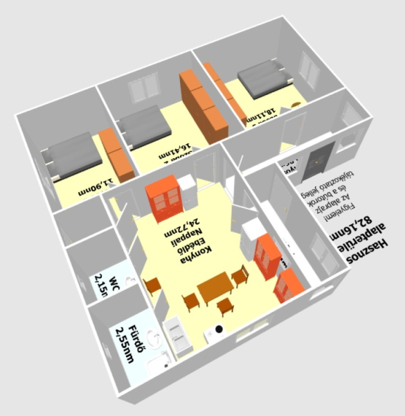 A főépület hasznos alapterülete 82,16nm melyben található: