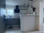 Földszinten egy előszoba, fürdőszoba, mosdóval, és amerikai konyhás nappali.