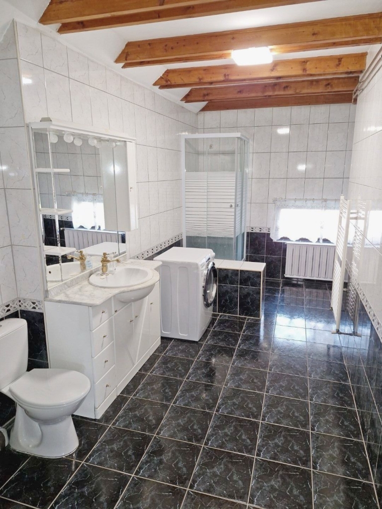 A házban 2 nappali, 2 konyha, spájz, 2 ebédlő, 6 szoba, 3 fürdőszoba, 4 wc található. 3 külön bejárattal rendelkezik.