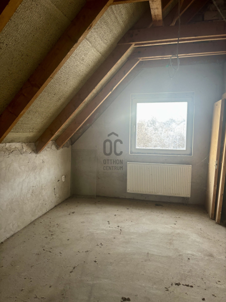 - Külső lépcsőn jutunk fel a szerkezetkész tetőtérbe, amelynek a befejezésével egy külön lakrész alakítható ki.