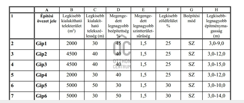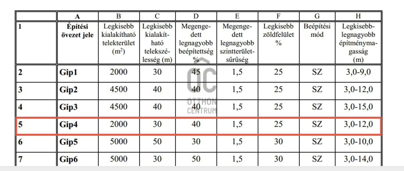 • ÖVEZETI besorolás: GIP-4