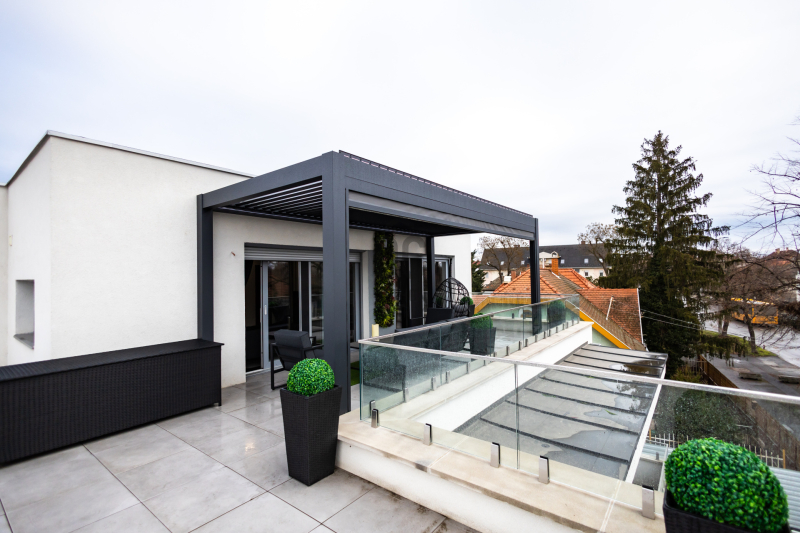 -panorámás tetőterasz (90m2)