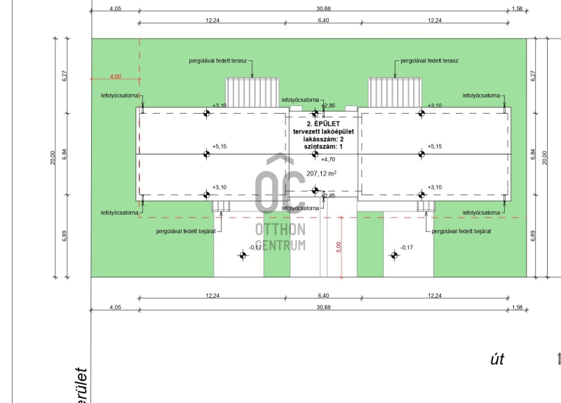 * 65,96 nm hasznos alapterület + 13,5 nm-es pergolával fedett terasz