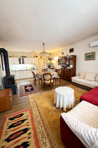A bővítés során egy modern, jól szigetelt hátsó lakrész készült, amely teljes értékű, önálló életteret biztosít. Az ingatlan elöl és hátul fedett terasszal rendelkezik, a hátsó teraszról lenyűgöző panoráma nyílik a hegyekre.