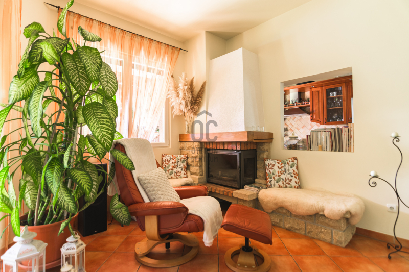 A fűtésről gázkazán gondoskodik, az alsó szinten padlófűtéssel kiegészítve. A nappaliban hangulatos kandalló található, míg az emeleti szobákban 4 darab klímaberendezés biztosítja a kellemes hőérzetet. A ház energiatakarékos működését egy 6 kW-os napelemrendszer segíti (16 db panel), amely jelentősen csökkenti az üzemeltetési költségeket.
