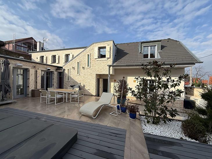 -A 2012-ben, prémium minőségben épült ingatlan 220 m² lakóterülettel rendelkezik, amely egy 345 m²-es, intim hangulatú telken helyezkedik el.