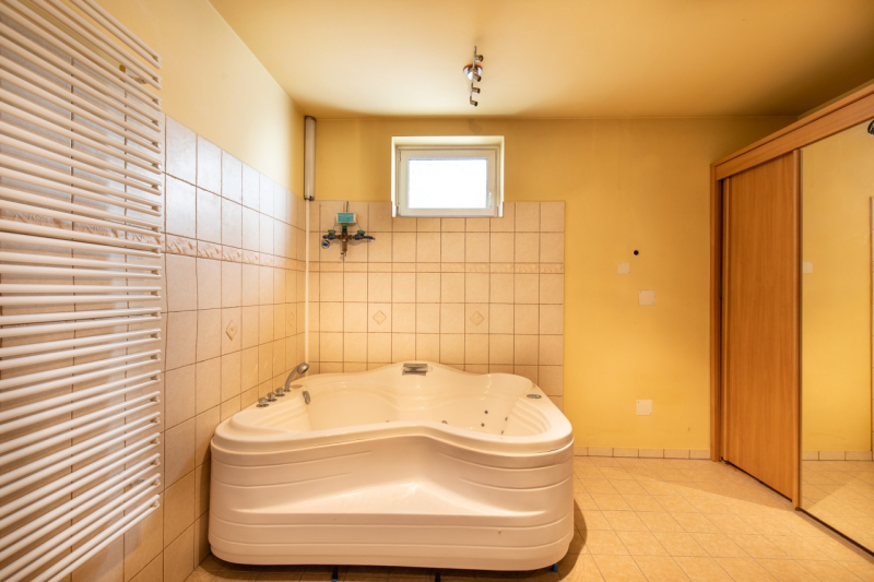 A pinceszinten wellnessrészleg került kialakításra zuhanyzóval, jakuzzival, emellett helyet kapott a gépészeti egység és egy külön mosó-szárító helyiség is.