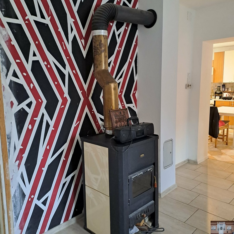 Fűtése egy rendszerről, kombi gáz cirkóval és vízteres kandallóval üzemeltethető, mely a 2. lakásban van.