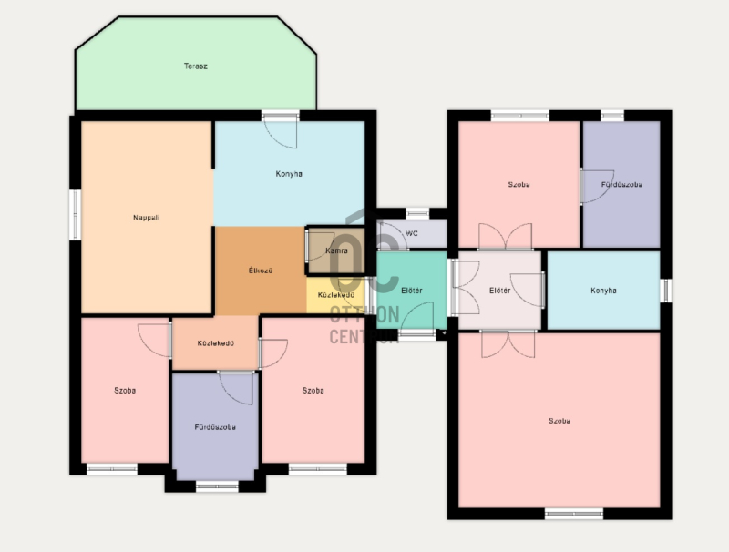 - A második, nagyobb, 73 nm-es épületrész 2000-ben épült, elosztása: amerikai konyhás nappali, 2 szoba, fürdőszoba, külön WC, kamra, közlekedők