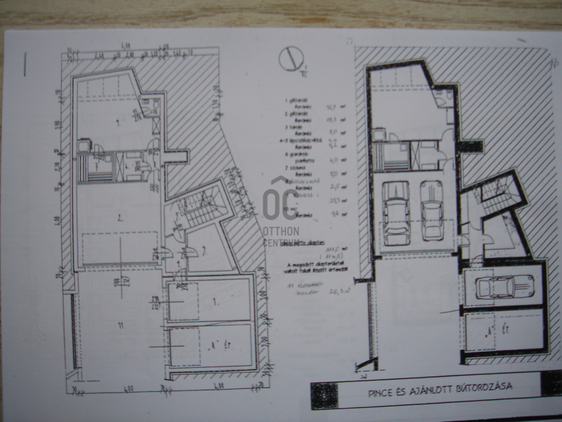 - pinceszinten háromállásos garázs, konditerem, szauna, tusol,