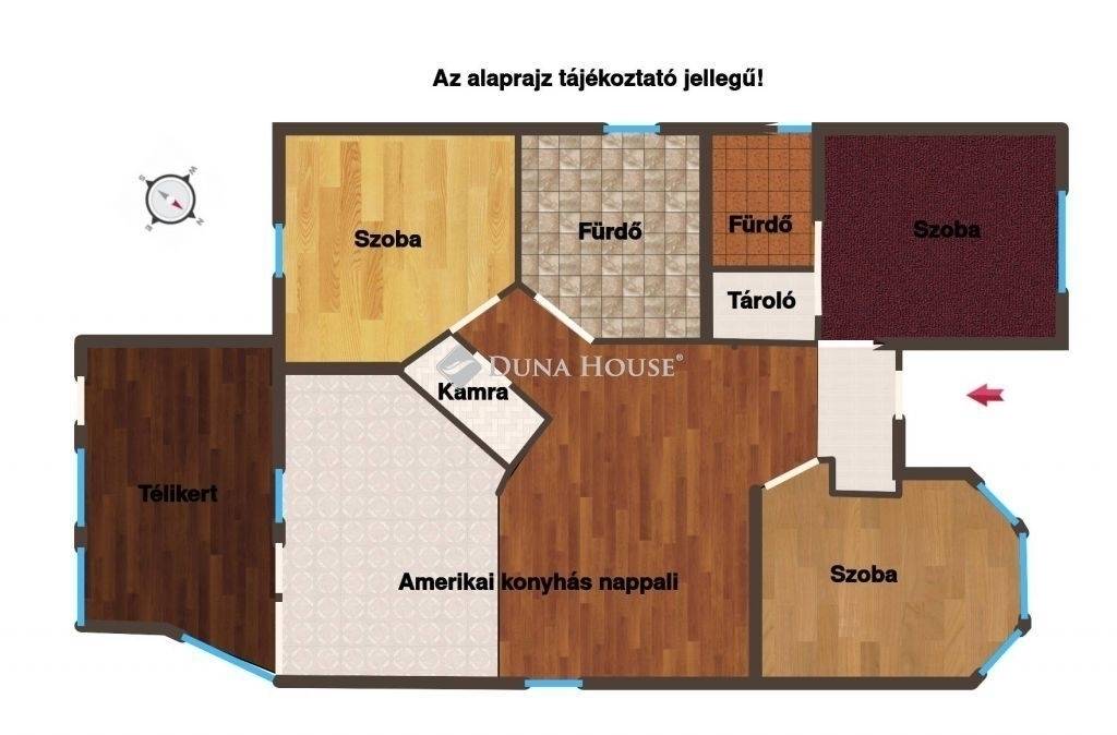A 118 m² lakóterületű ingatlan három kényelmes hálószobával, tágas és napfényes amerikai konyhás nappalival, valamint két fürdőszobával, WC-vel rendelkezik. A praktikus elrendezés élhető tereket és kényelmes mindennapokat biztosít, ideális megoldás családosok számára.